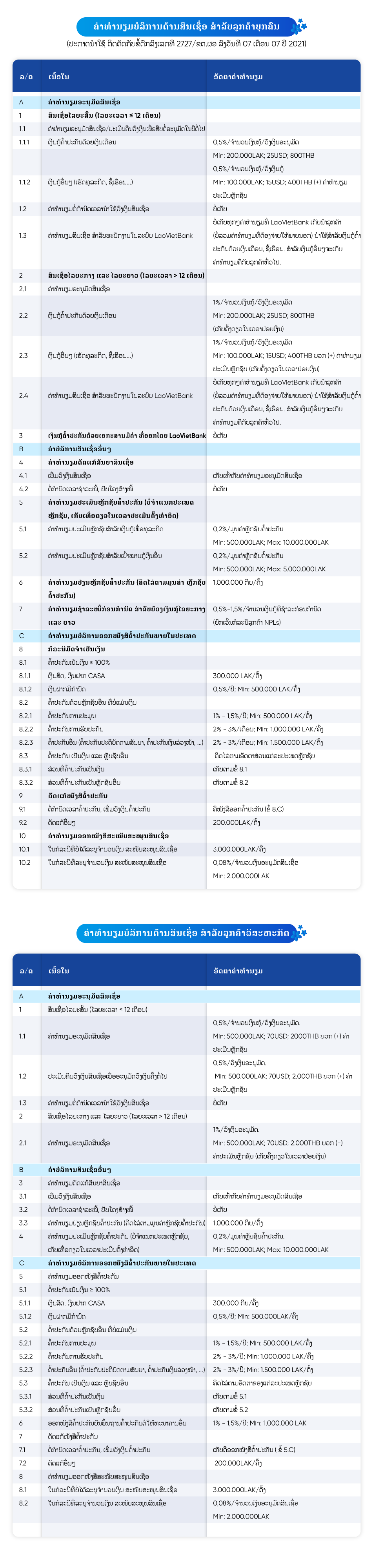ຄ່າທໍານຽມສິນເຊື່ອ ແລະ ໜັງສືຄໍ້າປະກັນ