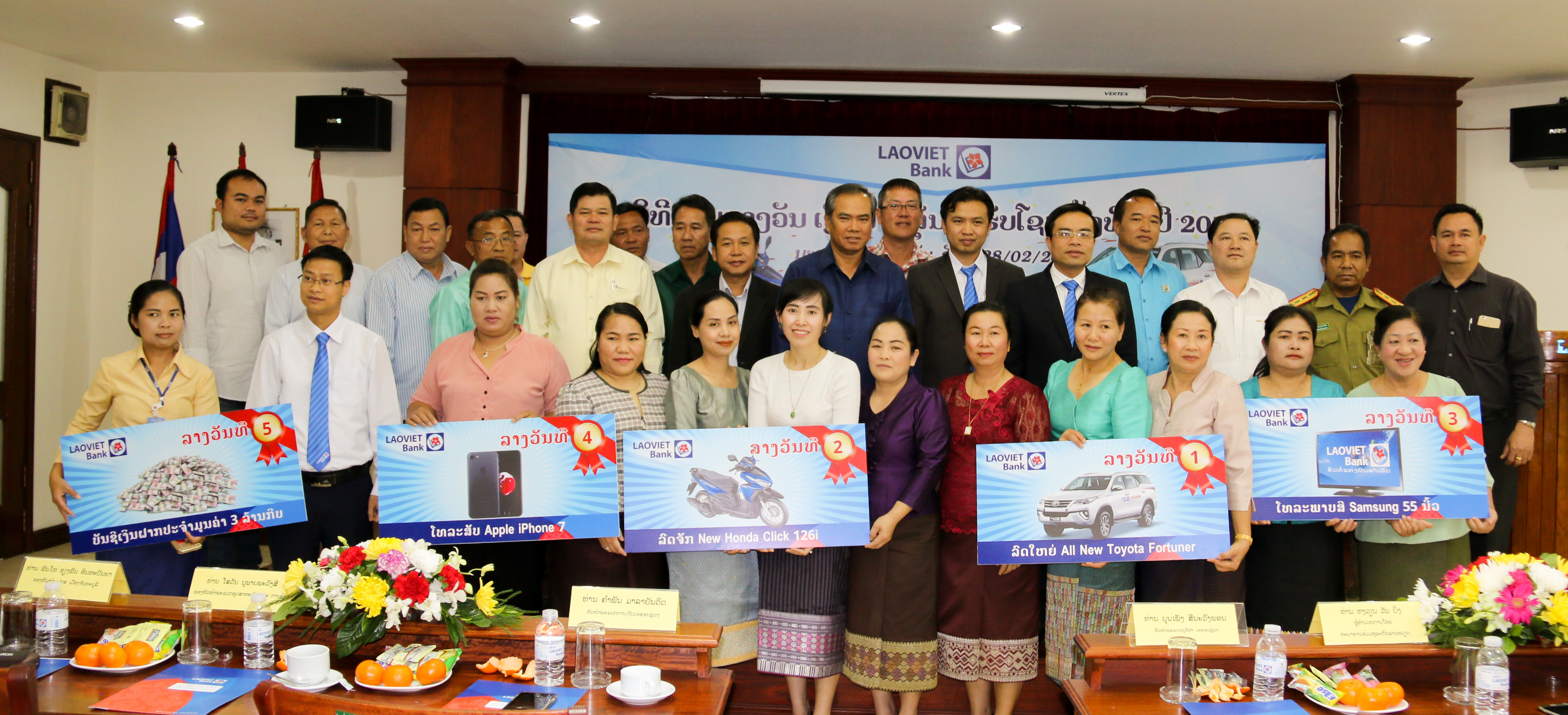 On 28 February, 2012, the awarding ceremony for the 2nd saving program 2016 was held at Head office of LaoVietBank. Attending the ceremony were representatives of state agencies such as representatives of the Department of Finance, Department of Industry and Trade, Department of Justice, Police of Chanthabuly District, winners, media’s representatives in Laos.