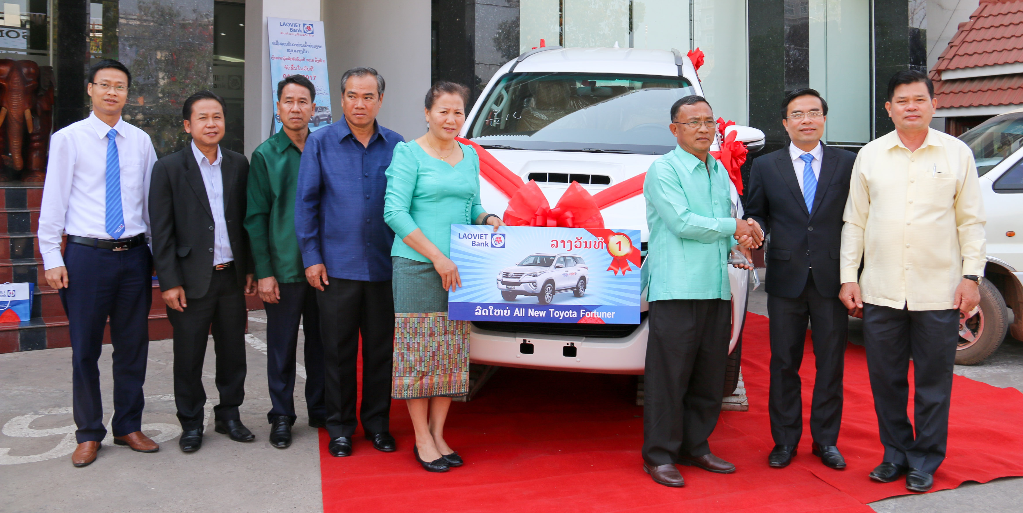 The total prize for the 2nd saving program 2016 consists of 39 prizes worth a total of 730 million kip. In particular, the most valuable prize is the All New Toyota Fortuner worth more than 400 million kip belonged to Mr. Axang FOU with winning code AE030326. 03 second prizes for each Honda Click 1 Prize worth 17.6 million kip was awarded to Mr. SANETY SENGDARA; Mrs. DAVONE SENGSOULYPHON and Ms. DAONOY SONEBOUTTA and other awards such as: