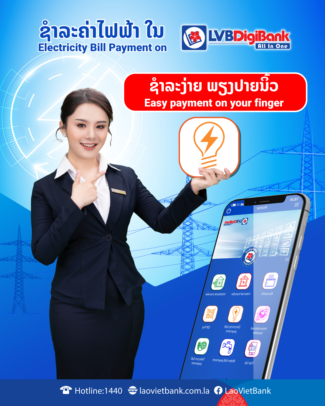 ຢູ່ບ້ານ ທ່ານກໍ່ຊຳລະຄ່າໄຟໄດ້ພຽງແຕ່ທ່ານໃຊ້ LVB DigiBank.