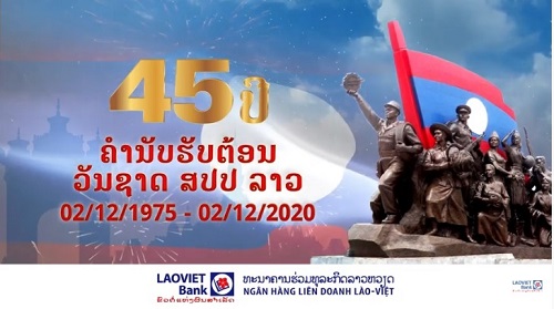 ຄຳນັບຮັບຕ້ອນວັນຊາດທີ 2 ທັນວາ ຄົບຮອບ 45 ປີ ດ້ວຍຄວາມຮູ້ບຸນຄຸນຈາກຜູ້ບໍລິຫານ ແລະ ພະນັກງານ ທະນາຄານຮ່ວມທຸລະກິດລາວ-ຫວຽດ Chào mừng 45 năm Quốc khánh nước CHDCND Lào (2/12/21975 - 02/12/2020).