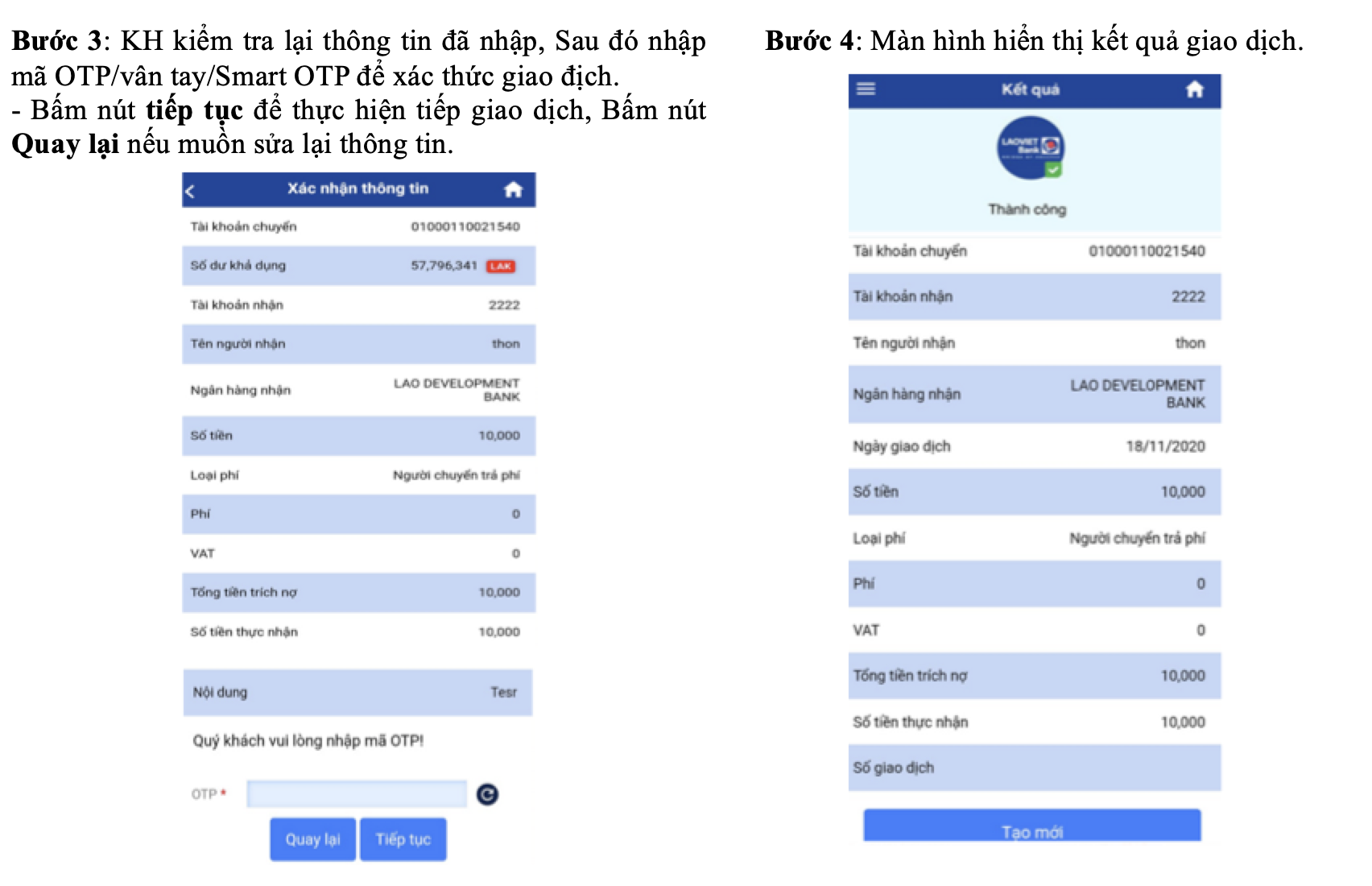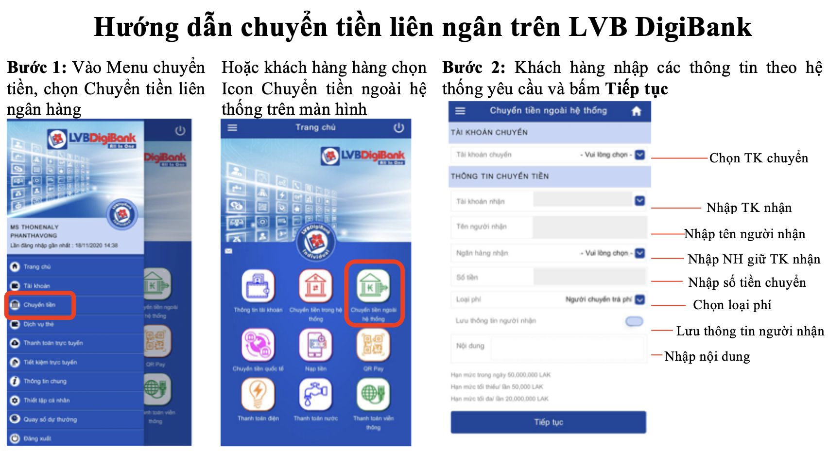ü Hạn mức chuyển tiền: 50,000,000 LAK/ngày (20,000,000 LAK/giao dịch).