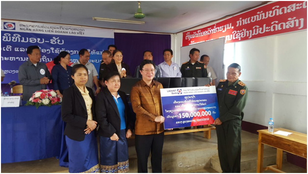Nhân dịp đ/c Pany YATHOTOU - Ủy viên BCT, Chủ tịch Quốc hội Lào tiếp xúc cử tri tại tỉnh Luongprabang. Ngày 10/03/2016 và ngày 16/03/2016, Ngân hàng Liên doanh Lào Việt thực hiện trao tặng an sinh xã hội gồm máy vi tính và trang thiết bị văn phòng cho Trường Quân đội địa phương tỉnh Luongprabang, Viện kiểm sát nhân dân và Tòa án nhân dân tỉnh Luongprabang với tổng giá trị 190 triệu kíp, cụ thể: