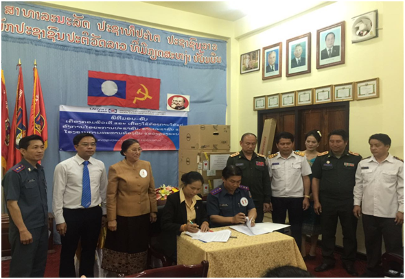 Trao tặng Trường Quân đội địa phương tỉnh Luongprabang 15 bộ máy vi tính và trang thiết bị văn phòng để phục vụ công tác giảng dạy tại trường, tổng trị giá tài trợ 150 triệu kíp;