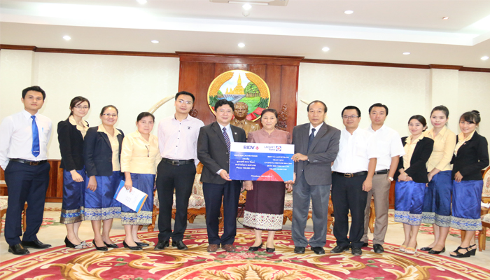 Ngân hàng TMCP Đầu tư và Phát triển Việt Nam (BIDV) và Ngân hàng Liên doanh Lào Việt (LaoVietBank) trao an sinh xã hội cho Quốc hội CHDCND Lào năm 2014 trị giá 150.000 USD