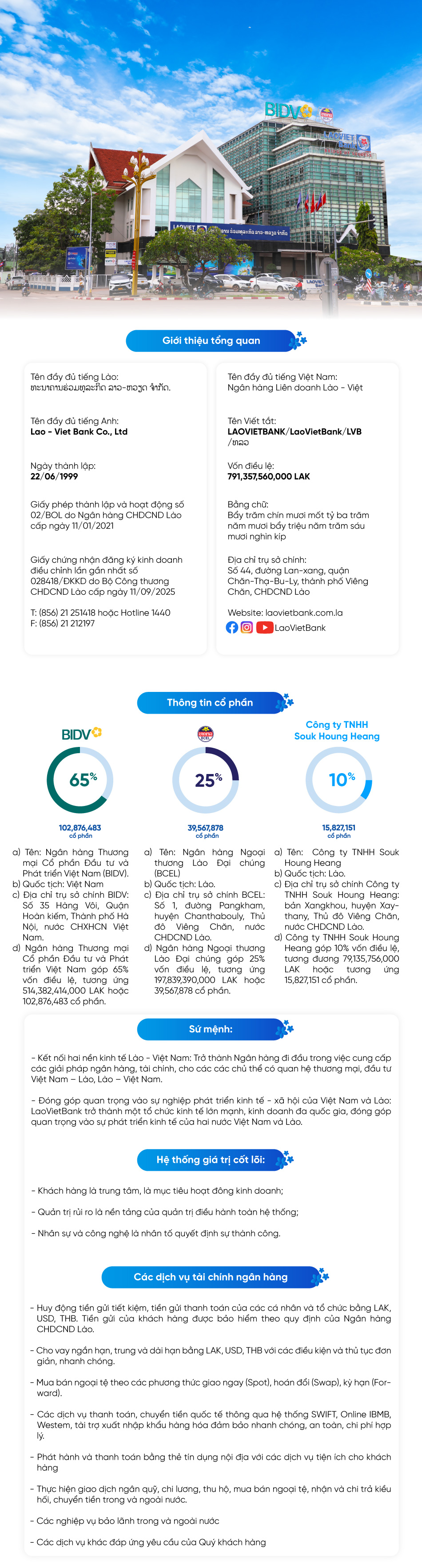 Thời gian giao dịch phục vụ khách hàng tại các Chi nhánh, Phòng giao dịch, Điểm giao dịch của LaoVietBank - Từ thứ 2 tới thứ 6: Từ 08h30 tới 16h00 (trừ ngày lễ, tết).